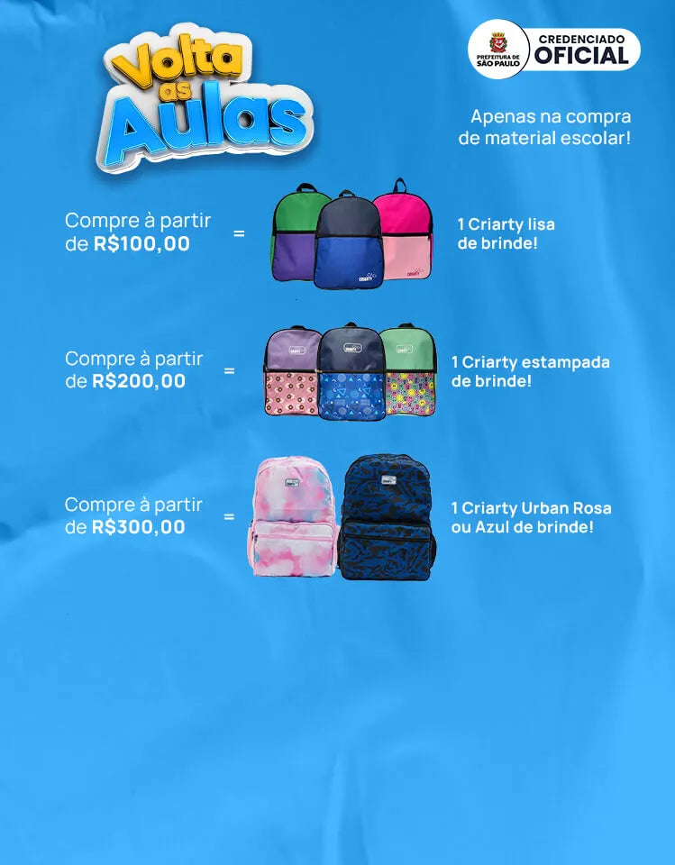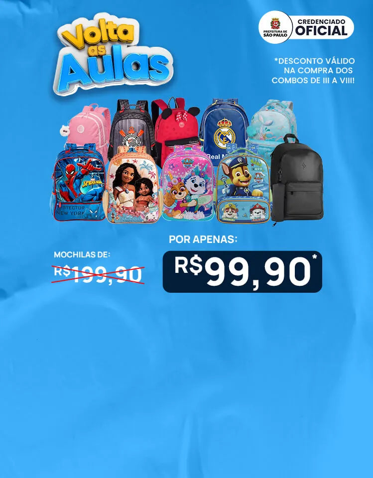 Com a Focus na compra de um COMBO você garante um desconto de R$100 na mochila e mais uma de BRINDE!