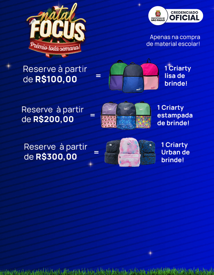 Somos uma loja afiliada a prefeitura de São Paulo e participamos do benefício DuePay. Então aceitamos somente o pagamento via Kit escolar Duepay.