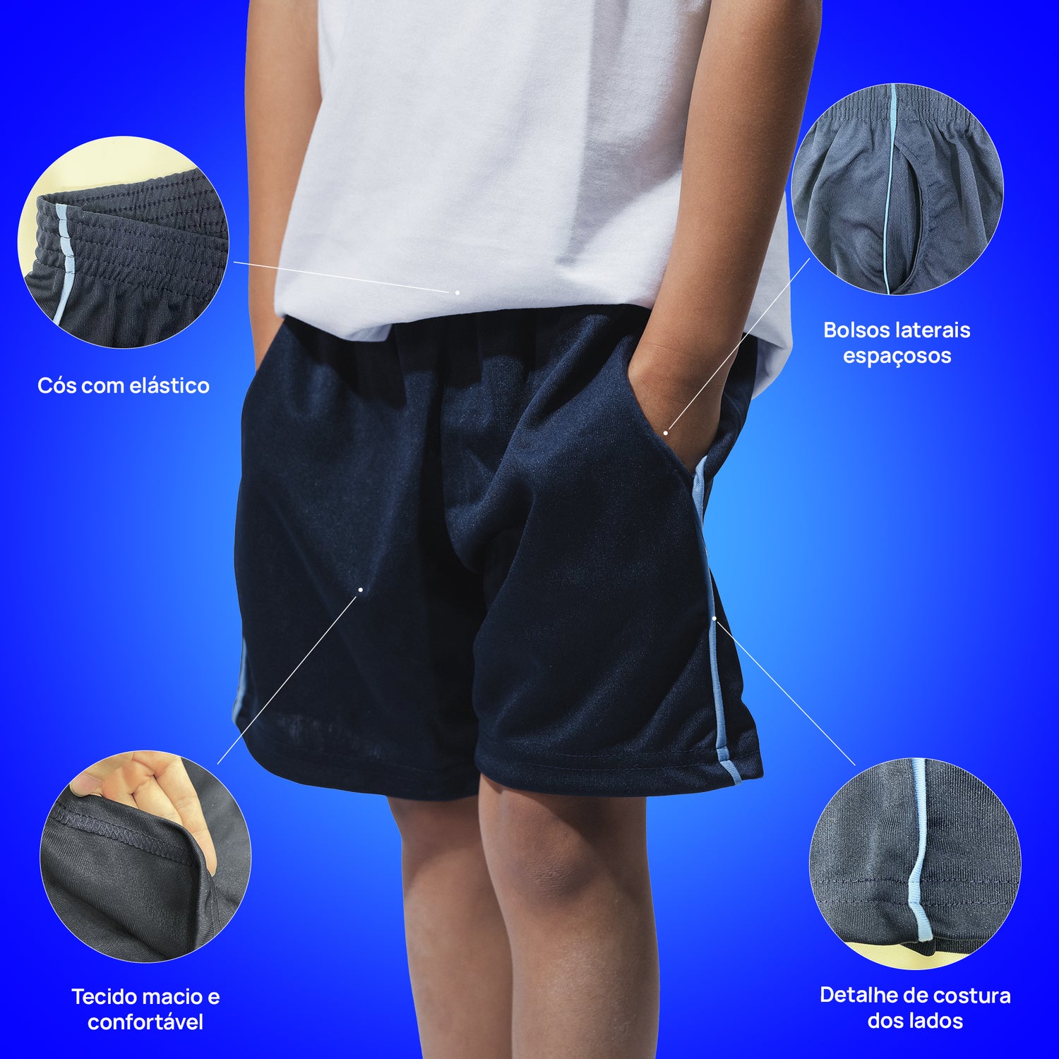 Confeccionada em malha dupla 100% poliéster, a bermuda oferece conforto, resistência e liberdade de movimento com sua modelagem regular fit. O cós com elástico proporciona ajuste ideal ao corpo, perfeita para a rotina escolar e atividades físicas.