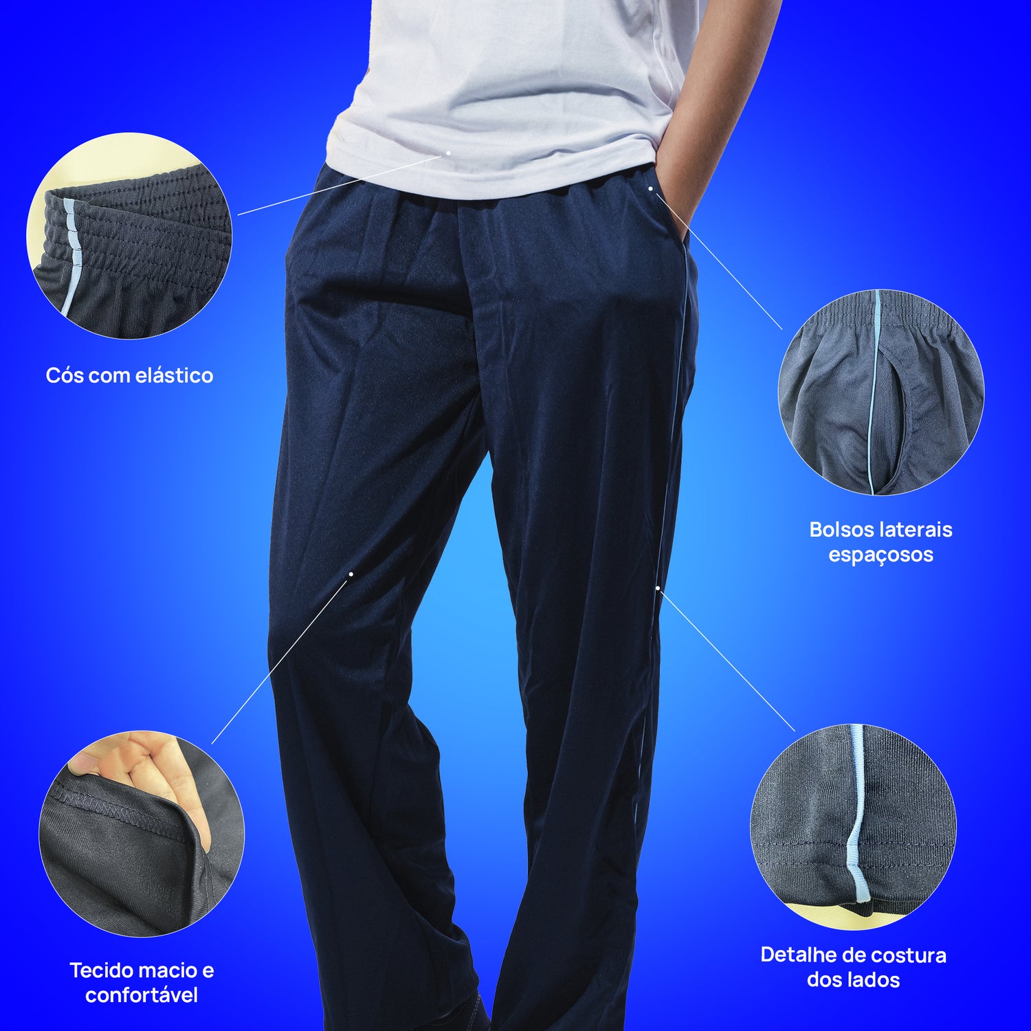 Confeccionada em malha dupla 100% poliéster, esta calça oferece o equilíbrio ideal entre conforto e resistência, perfeita para acompanhar a rotina escolar. Sua modelagem regular fit proporciona liberdade nos movimentos, permitindo que as crianças se movimentem com facilidade durante as atividades. O cós com elástico garante um ajuste seguro e confortável ao corpo, tornando-a a escolha ideal para o uso diário.
