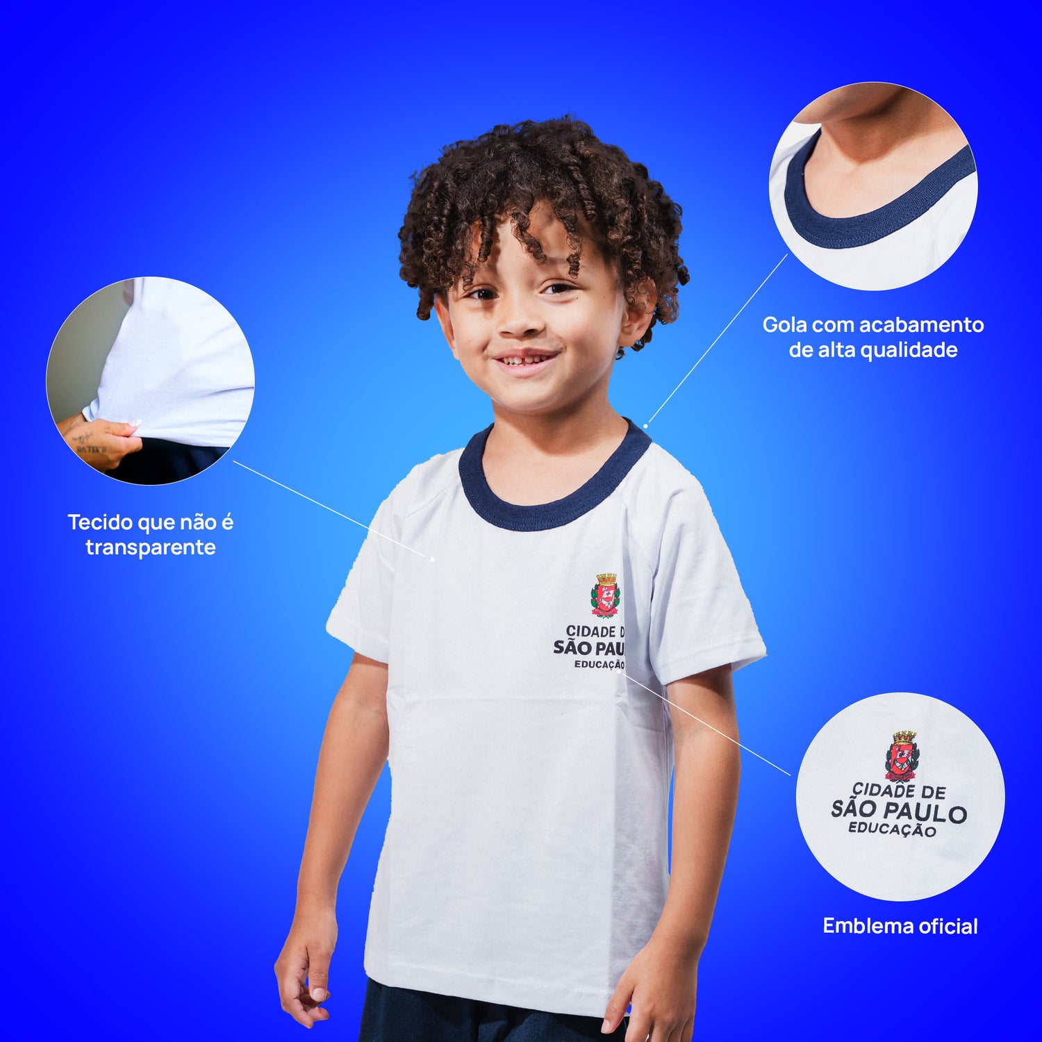 A Camiseta Escolar é leve, confortável e resistente, ideal para o uso diário. Seu tecido respirável garante bem-estar durante as atividades escolares e recreativas.