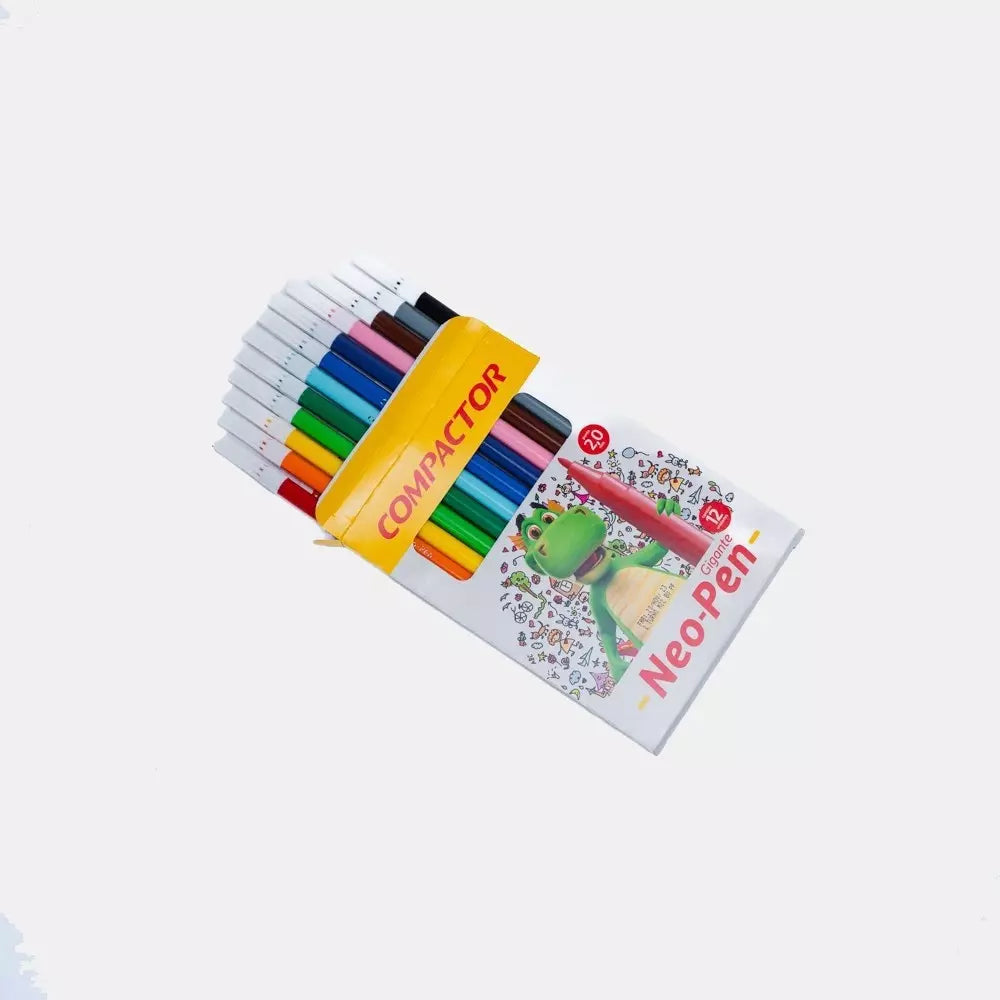 As Canetinhas Neo-Pen da Compactor foram feitas para acompanhar a criatividade das crianças com segurança e durabilidade. Com ponta super resistente e escrita macia, garantem traços vibrantes sem danificar o material. Possuem tinta à base de água, super lavável e fácil de remover das roupas. O estojo com 12 cores oferece intensidade e variedade para desenhar, colorir e explorar a imaginação com tranquilidade. Segurança, economia e diversão em um só produto!