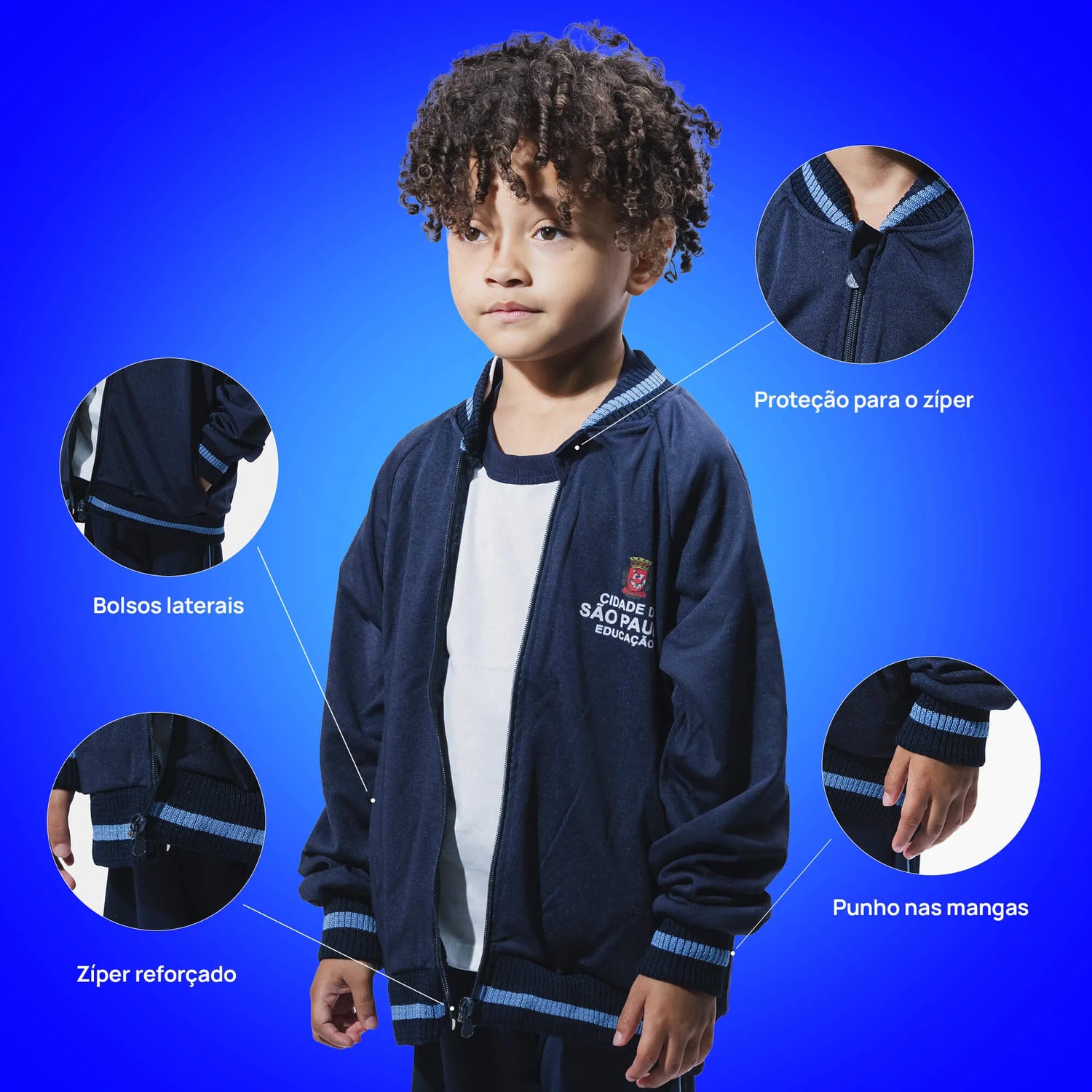Confeccionada em malha dupla 100% poliéster, a jaqueta oferece conforto térmico, alta durabilidade e modelagem regular fit, que garantem liberdade nos movimentos. Possui gola careca e acabamento em tecido sanfonado na barra, punhos e decotes, conforto um caimento firme e confortável.