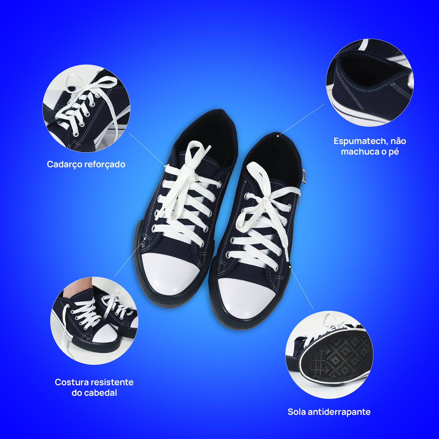 Confeccionado em lona de algodão, o tênis escolar proporciona conforto, resistência e acabamento de alta qualidade. Leve e anatômico, foi desenvolvido para oferecer bem-estar durante todo o dia, sem causar desconforto ou machucar os pés. Sua estrutura reforçada garante durabilidade para acompanhar a rotina escolar com segurança e praticidade. Ideal para o uso diário dos estudantes.